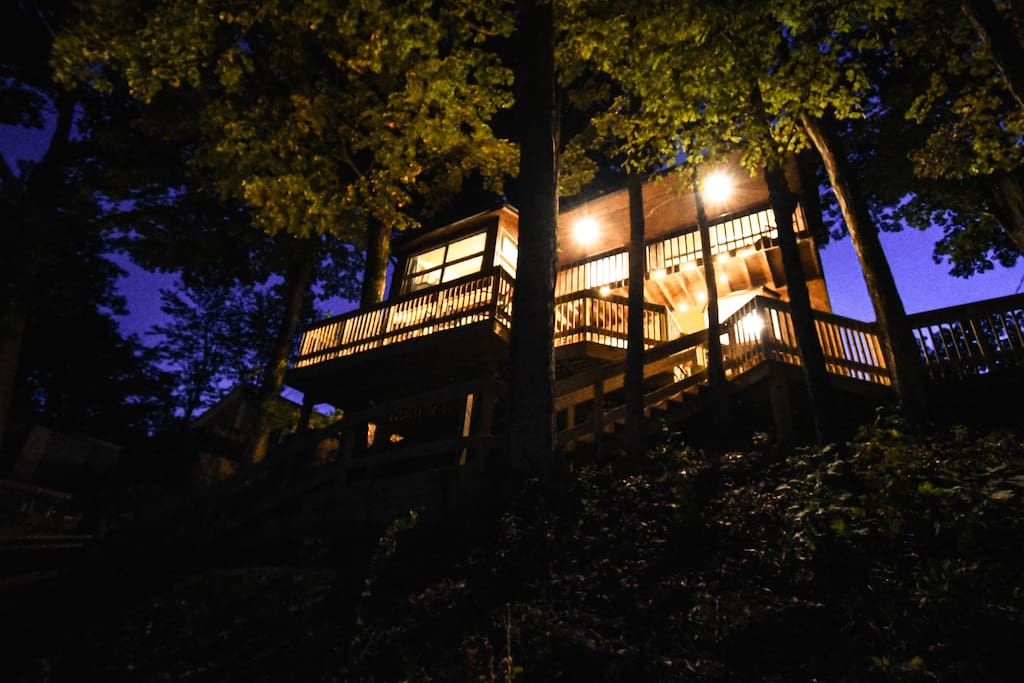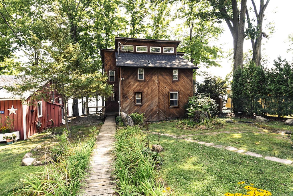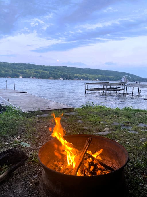 Main Level: The large primary suite features a king-sized bed with luxurious linens, a bathroom, and convenient laundry facilities. The open-concept living area boasts a beautifully updated kitchen with a range equipped with an air fryer, refrigerator, microwave, blender, drip coffee maker, coffee grinder, tea kettle, and waffle maker. You'll also find cutting boards, pots, pans, knives, and utensils to prepare your favorite meals. The adjacent dining area seats 6 guests comfortably. Step out onto the deck to enjoy outdoor dining and lake views. Upper Level: Two additional bedrooms—one with a queen-sized bed and the other with two twin beds—provide cozy accommodations. A second full bathroom is also located on this floor. The loft area offers a reading nook, game space, and a sunroom with panoramic lake views. An outdoor deck surrounded by trees provides a peaceful spot to relax. Lower Level: The basement features a yoga studio and indoor sauna for ultimate relaxation, an air hockey table for friendly competition, and a game room with a large sectional couch and smart TV for movie nights. Outdoor Amenities Private Beach and Dock: Access the water directly from the property for swimming, kayaking, or simply lounging by the shore. Guests are responsible for providing their own watercraft or rent from one of the nearby rental spots. Fire Pit: Gather around the fire pit with seating for six, perfect for stargazing and storytelling. Guests are responsible for providing their own firewood. Pond: A small pond in the front yard is home to a chorus of frogs—approach quietly for a serene experience. Tech & Entertainment High-Speed Wi-Fi: Stay connected with reliable internet access throughout the home. Smart TVs: Log into your favorite streaming services and enjoy entertainment options in the game room and living room. Board Games & Office Space: A selection of board games is available for family fun, and a dedicated desk area provides a quiet space for work if needed. Nearby Adventures & Experiences Glenn H. Curtiss Museum – Step back in time and explore vintage planes, motorcycles, and the story of aviation pioneer Glenn Curtiss. Finger Lakes Boating Museum – Wander among historic boats and catch a seasonal cruise on Keuka Lake. Living Roots Wine & Co. – Sip innovative Finger Lakes wines in a modern, relaxed tasting room. Weis Vineyards – Taste award-winning wines at NY Winery of the Year 2025, only 3 miles from home. The Windmill Farm & Craft Market – Browse local produce, handmade crafts, and antiques at this seasonal open-air market. Hammondsport Village – Explore charming shops, cozy cafes, and hidden gems in this historic lakeside town. Enjoy rotating family-friendly events, from art shows and BBQ competitions to seasonal festivals that bring the community to life. Antique Shops – Discover unique vintage treasures and collectibles on a leisurely village stroll. Keuka Lake – Swim, kayak, take a boat tour or relax on the public beach while soaking in serene lake views. Watkins Glen State Park – Hike along stunning waterfalls and cliffs for unforgettable Finger Lakes scenery, just 15 miles away. Watkins Glen International Raceway – Feel the thrill of world-class racing events nearby. Corning Museum of Glass – Watch artisans at work and get hands-on with glass-making experiences.