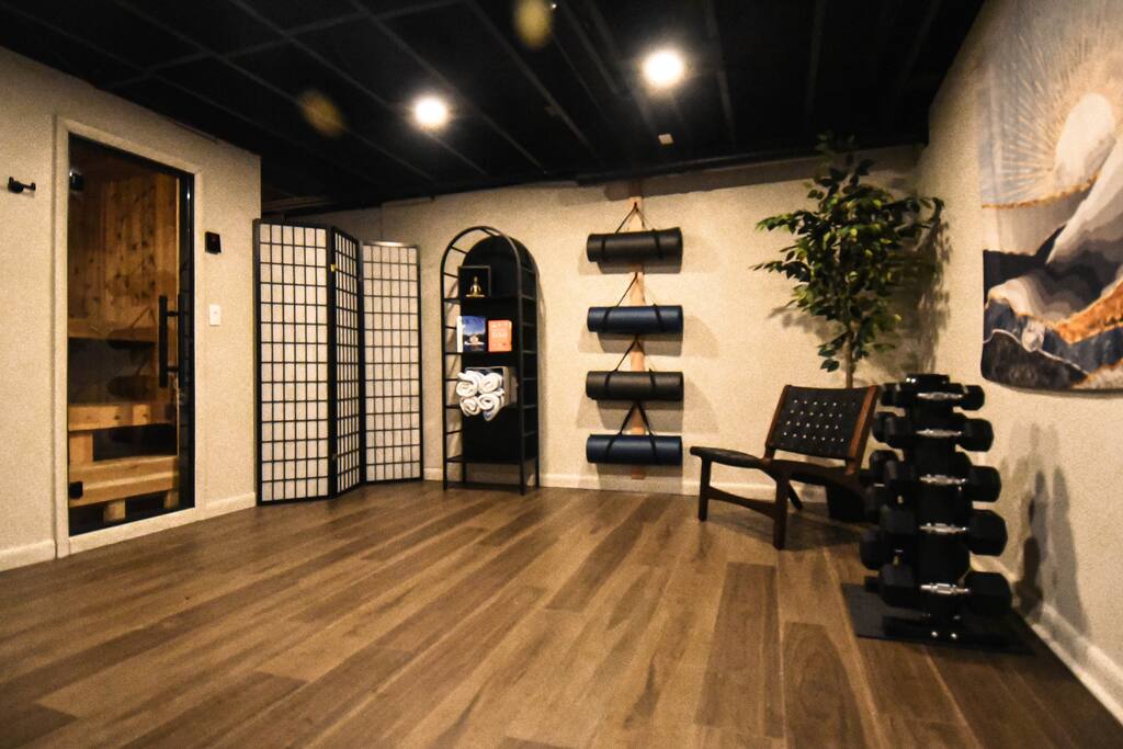 Main Level: The large primary suite features a king-sized bed with luxurious linens, a bathroom, and convenient laundry facilities. The open-concept living area boasts a beautifully updated kitchen with a range equipped with an air fryer, refrigerator, microwave, blender, drip coffee maker, coffee grinder, tea kettle, and waffle maker. You'll also find cutting boards, pots, pans, knives, and utensils to prepare your favorite meals. The adjacent dining area seats 6 guests comfortably. Step out onto the deck to enjoy outdoor dining and lake views. Upper Level: Two additional bedrooms—one with a queen-sized bed and the other with two twin beds—provide cozy accommodations. A second full bathroom is also located on this floor. The loft area offers a reading nook, game space, and a sunroom with panoramic lake views. An outdoor deck surrounded by trees provides a peaceful spot to relax. Lower Level: The basement features a yoga studio and indoor sauna for ultimate relaxation, an air hockey table for friendly competition, and a game room with a large sectional couch and smart TV for movie nights. Outdoor Amenities Private Beach and Dock: Access the water directly from the property for swimming, kayaking, or simply lounging by the shore. Guests are responsible for providing their own watercraft or rent from one of the nearby rental spots. Fire Pit: Gather around the fire pit with seating for six, perfect for stargazing and storytelling. Guests are responsible for providing their own firewood. Pond: A small pond in the front yard is home to a chorus of frogs—approach quietly for a serene experience. Tech & Entertainment High-Speed Wi-Fi: Stay connected with reliable internet access throughout the home. Smart TVs: Log into your favorite streaming services and enjoy entertainment options in the game room and living room. Board Games & Office Space: A selection of board games is available for family fun, and a dedicated desk area provides a quiet space for work if needed. Dock available seasonally, typically Memorial Day through Labor Day.